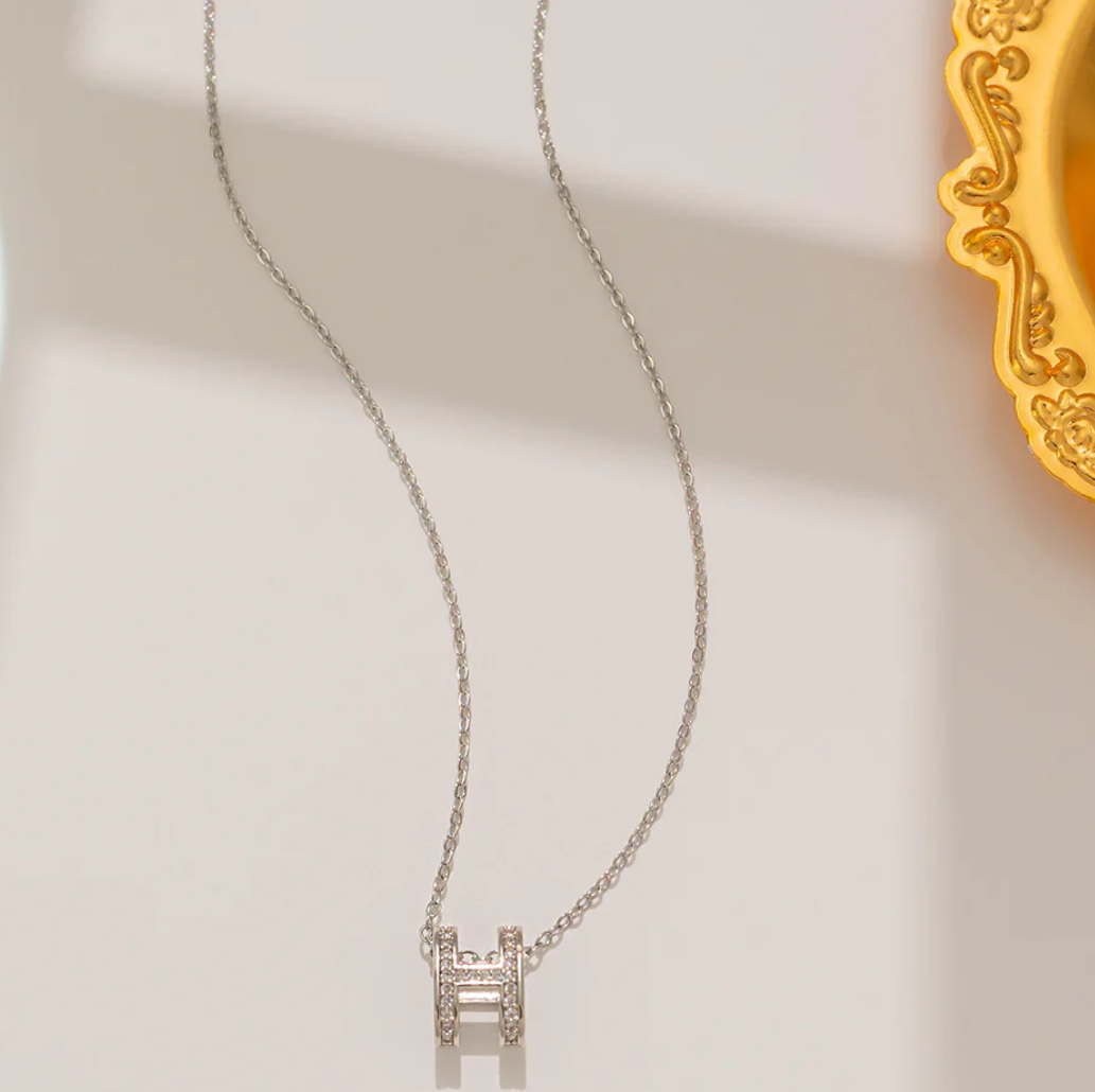 'H' Pendant, Cubic Zirconia, 3D setting Setting, Silver Effect